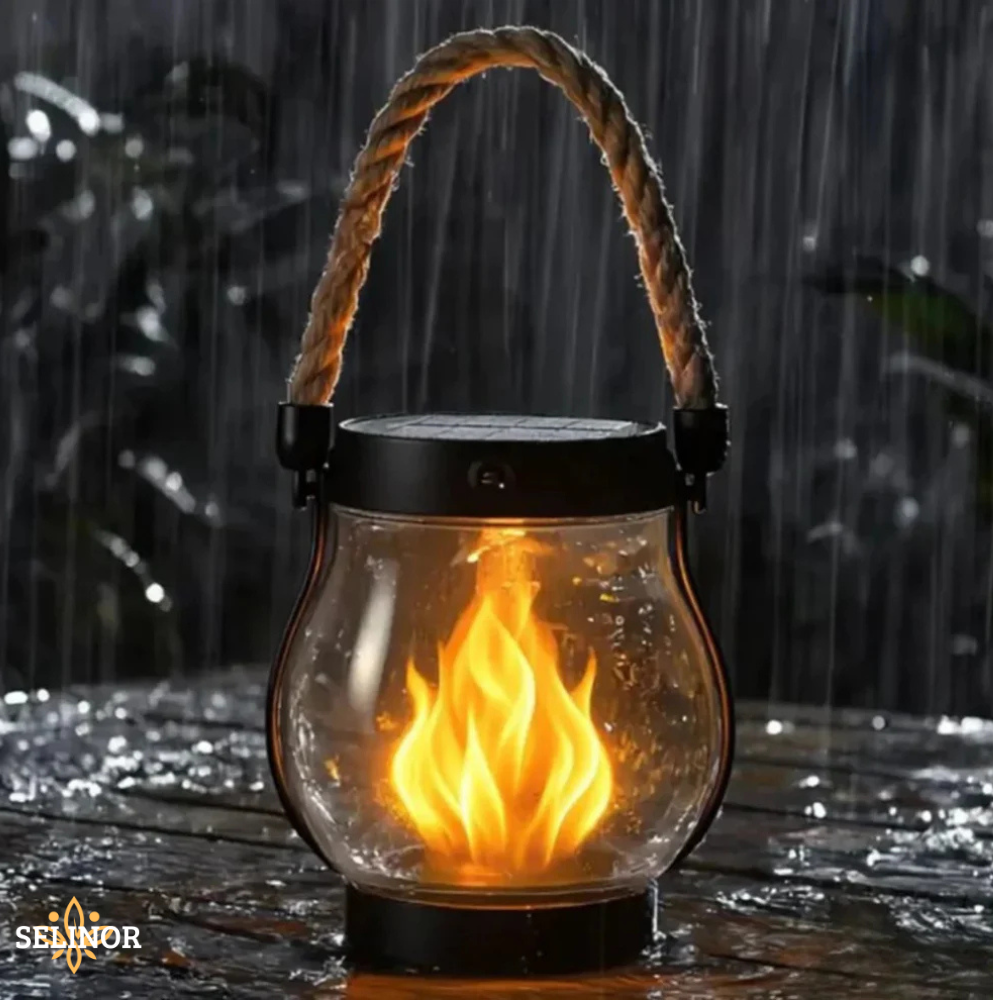 Flamora har ett starkt hamparep, högeffektiv solpanel och kraftfullt batteri lyser den hela natten, helt utan el. När solen inte visar sig kan du enkelt ladda den via kabel. Den realistiska flammeffekten sprider ett varmt, levande sken, medan den tåliga designen gör den perfekt för både ute och inne , året runt.